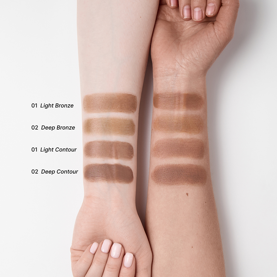 Для более аккуратного и естественного эффекта нанесите небольшое количество продукта на тыльную сторону ладони, слегка разогрейте и нанесите на лицо с помощью плоской кисти для контуринга.