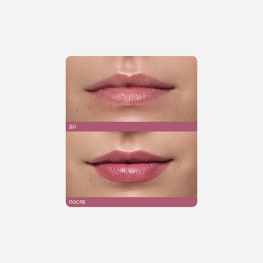 Масло жожоба и витамин Е в составе обеспечивают губам необходимый уход: увлажняют, питают и защищают от сухости. Помада комфортно и равномерно наносится, приятно ощущается на губах, не западает в трещинки.